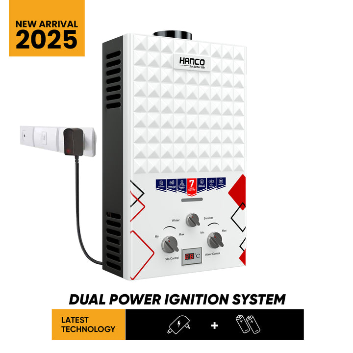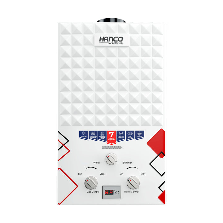 Hanco 7 Liters Instant Water Heater - Model 710B Dual Ignition - Gas Geyser